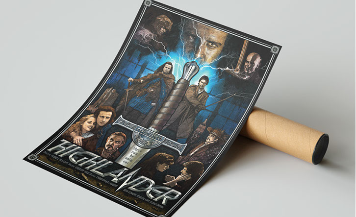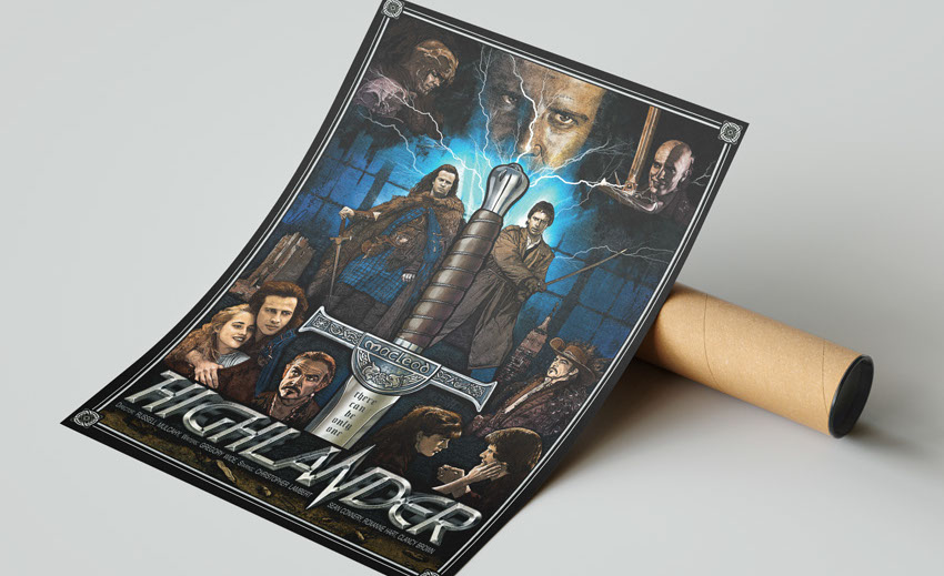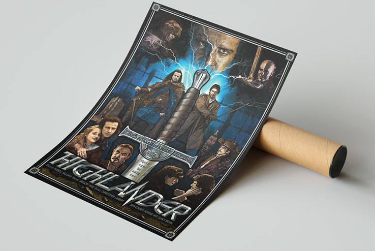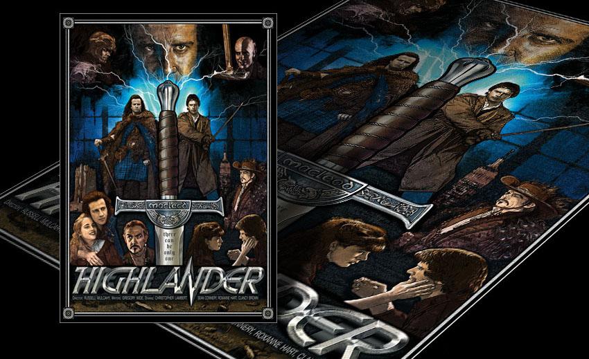 'Highlander (1986)' My poster version of an old popular 80s movie. All work was created in Adobe Photoshop - drawing and painting. The print is signed! The print frame is not included.. You can frame it and hang it at home or in the your office :)